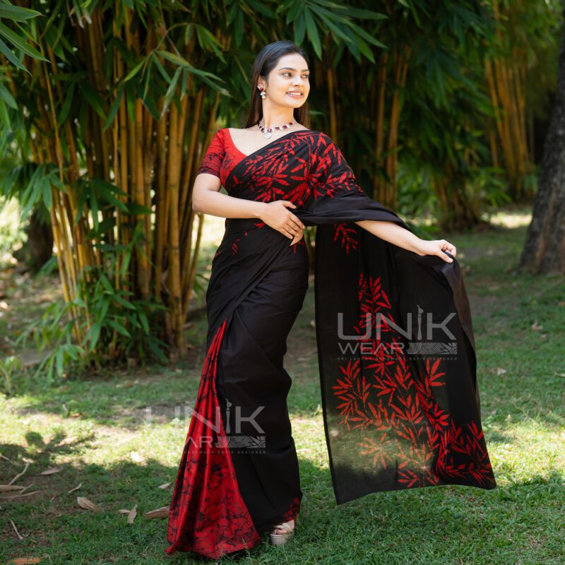 Handcrafted Cotton Batik Saree 2608 – Red and Black Saree
