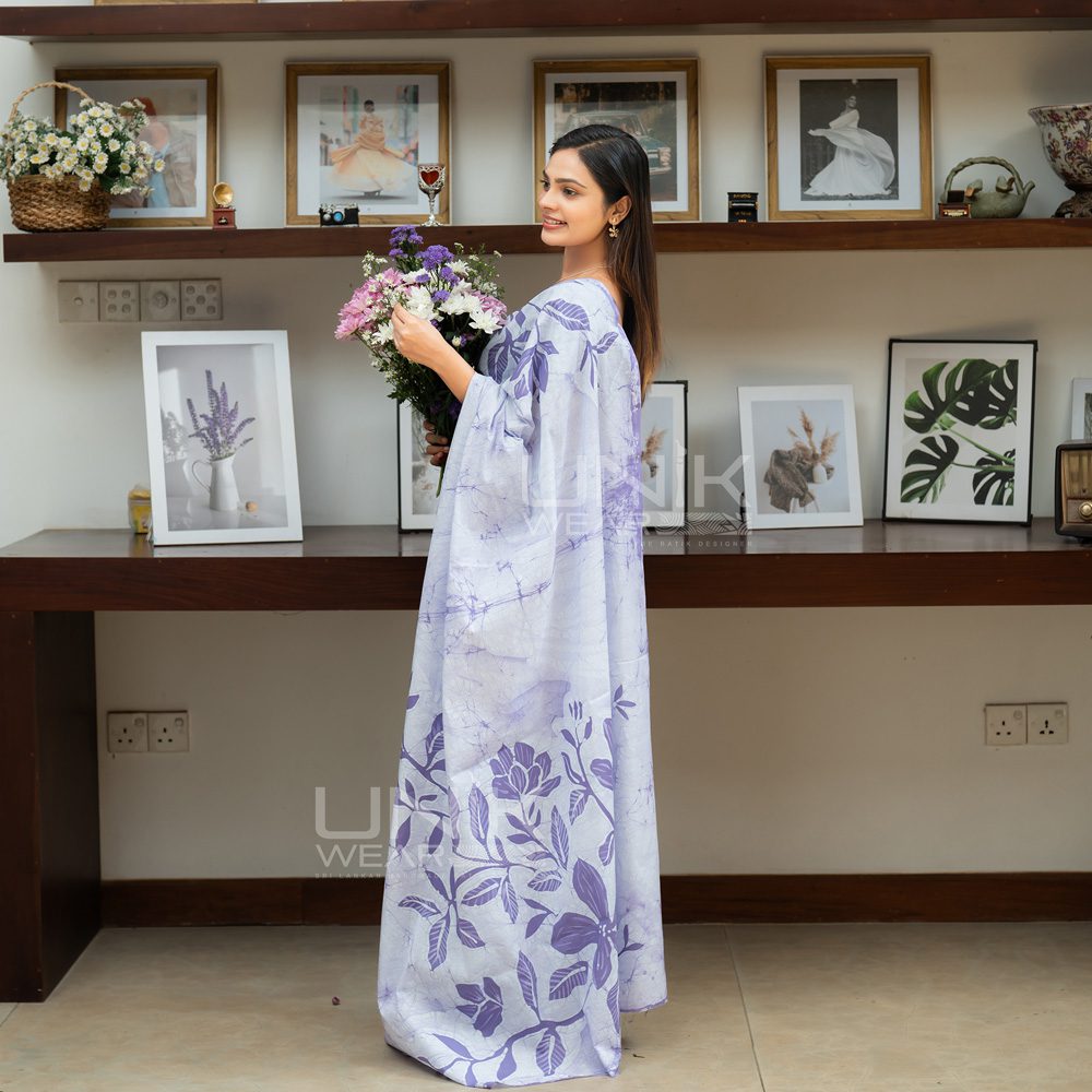 ASH & PURPLE SRI LANKAN HANDMADE COTTON BATIK SAREE 2059 රු6,790.00