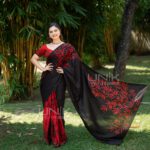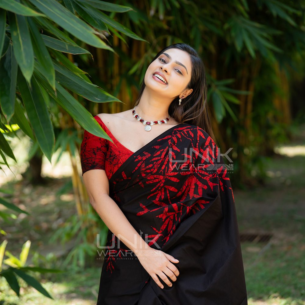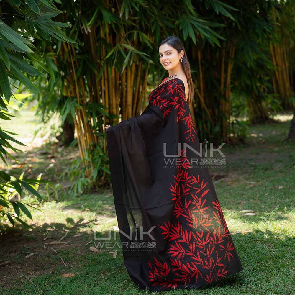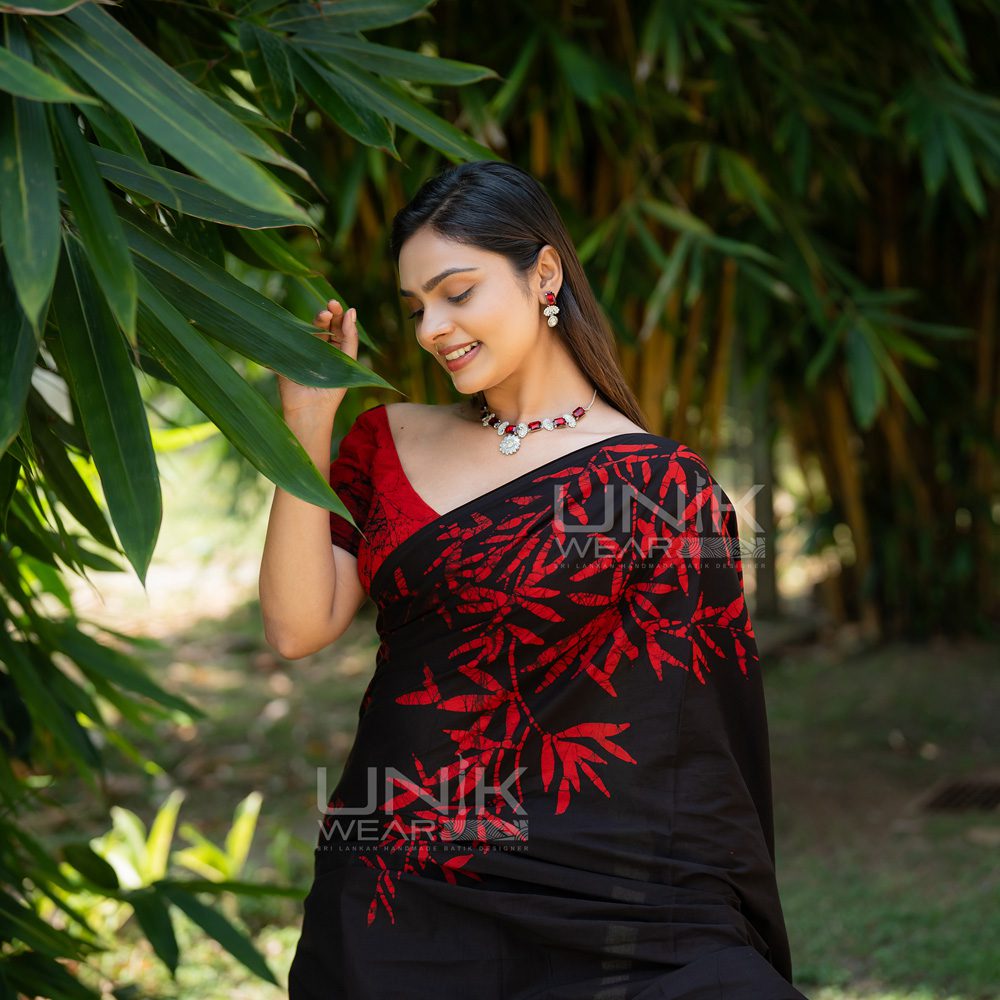 Home Cotton Sarees Super Voile Saree Two Color SV Sarees Handcrafted Cotton Batik Saree 2608 – Red and Black Saree