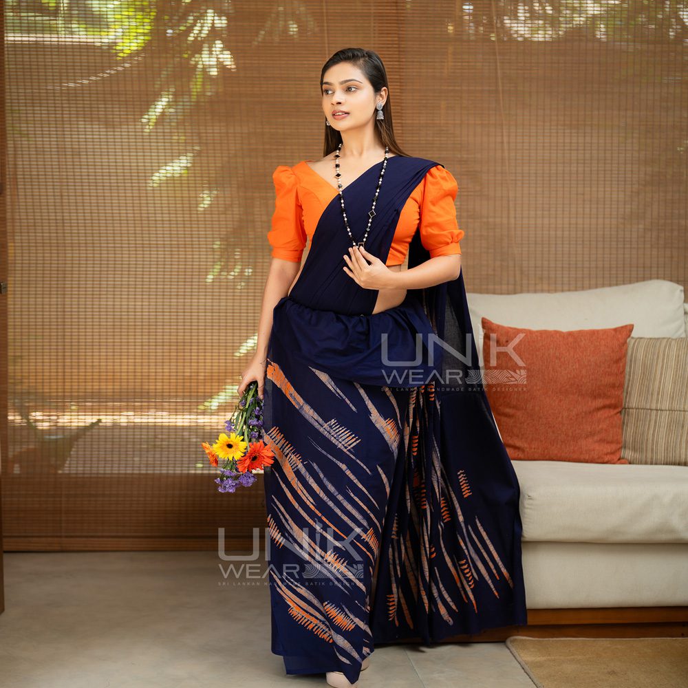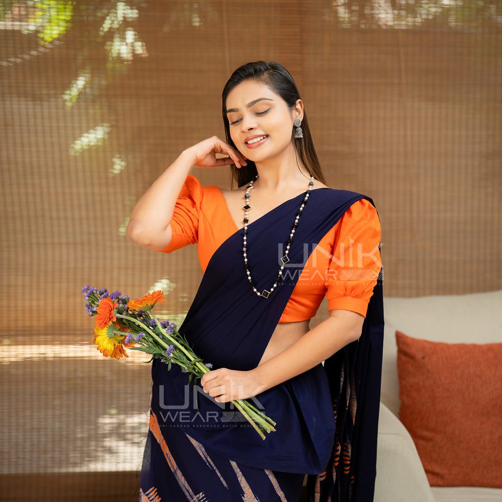 Handcrafted Cotton Batik Saree 2609 – Orange and Blue Saree