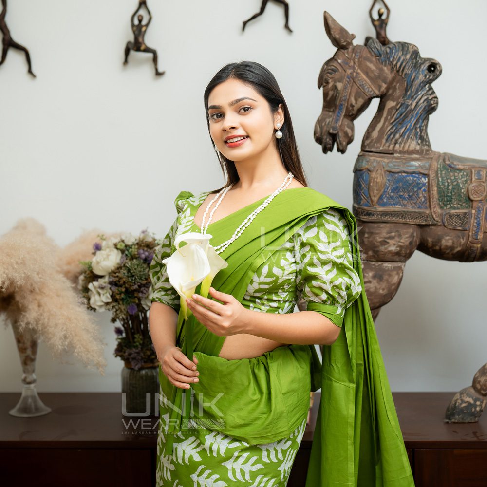 ASH AND GREEN SRI LANKAN HANDMADE COTTON BATIK SAREE 2117