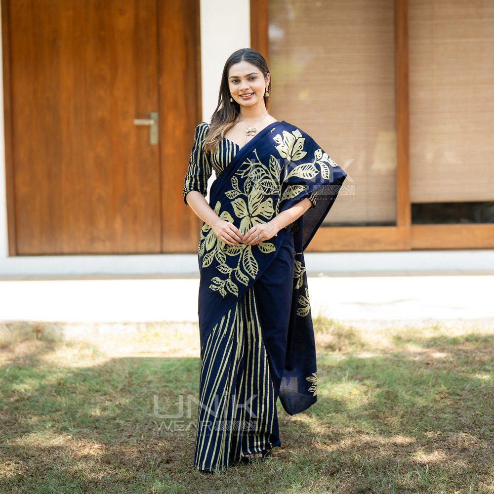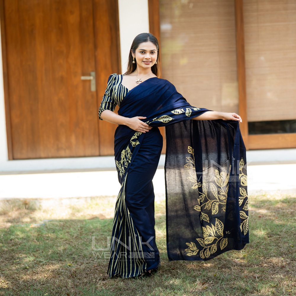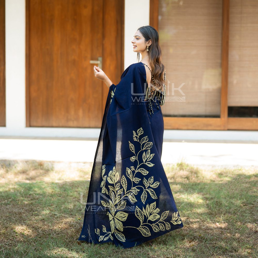Home Cotton Sarees Lanka Voile Saree Two Color LV Sarees Handcrafted Cotton Batik Saree 2628 – Blue Saree