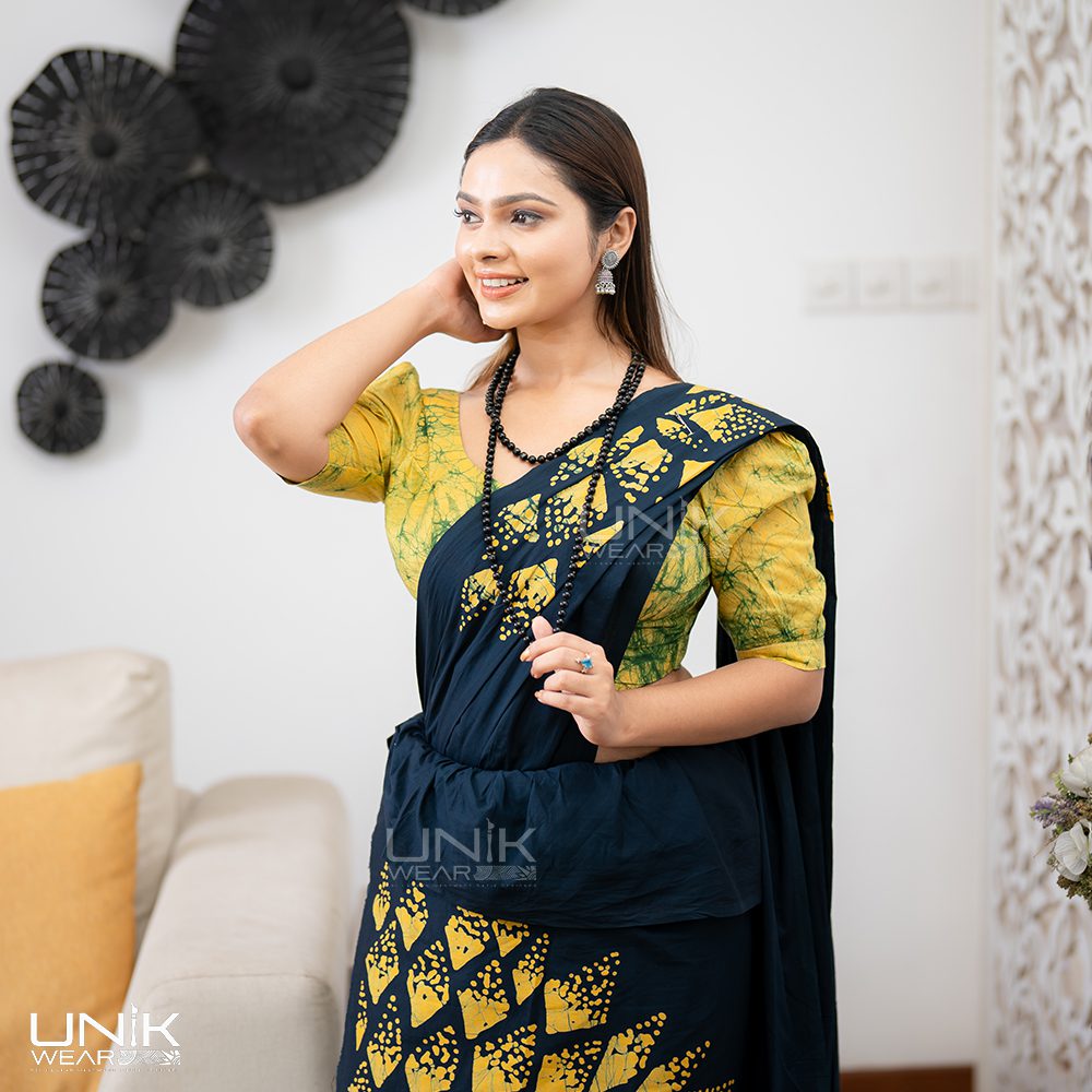YELLOW & BLUE SRI LANKAN HANDMADE COTTON BATIK SAREE 2125