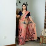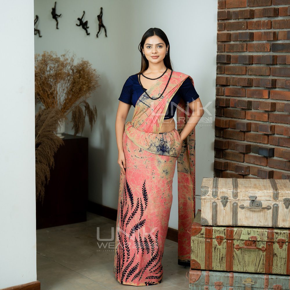 SALMON PINK & BLUE SRI LANKAN HANDMADE COTTON BATIK SAREE 2110
