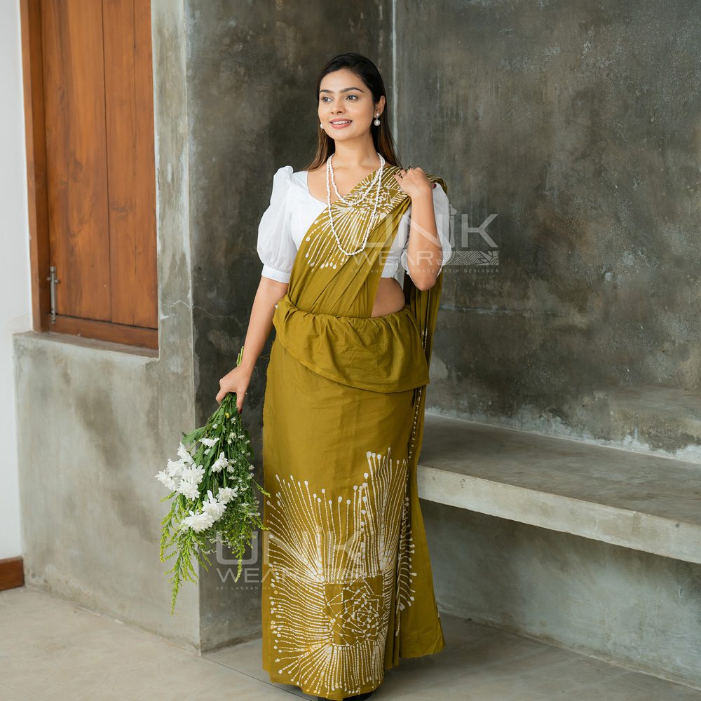 ASH & GREEN SRI LANKAN HANDMADE COTTON BATIK SAREE 2106
